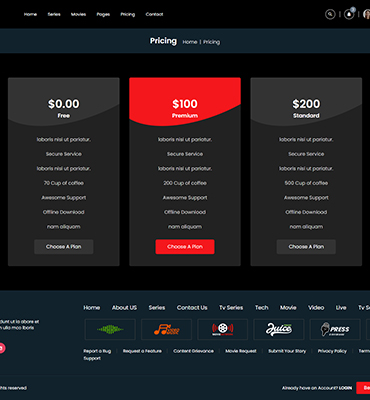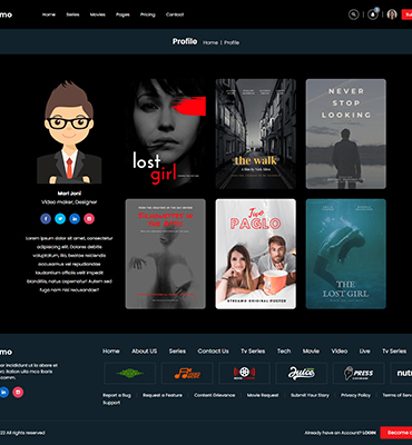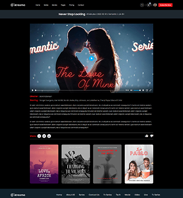 A clean Video & Media streaming website template. It provides a creative and professional design.